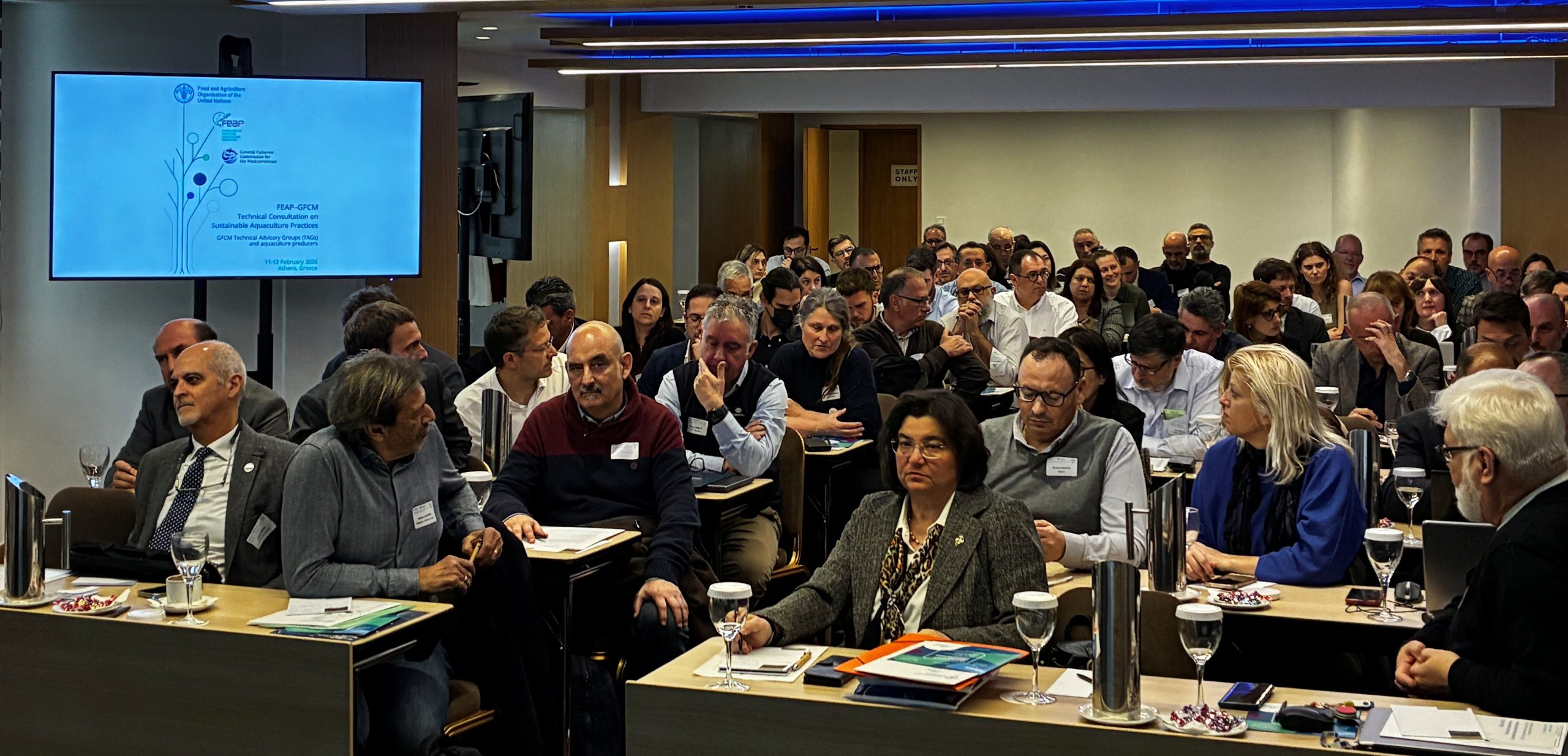Held in Athens on 11–12 February 2026, the FEAP–GFCM Technical Consultation on Sustainable Aquaculture Practices gathered over 70 participants in person and around 50 online to advance sustainable aquaculture in the Mediterranean and Black Sea. Jointly organised by FEAP and the GFCM (FAO) with EU financial support and in collaboration with our member association HAPO, it brought together producers, Technical Advisory Groups, Aquaculture Demonstration Centres, administrations, researchers and sector associations, underscoring that effective regional governance depends on structured producer engagement and farm-level feasibility. Discussions addressed key enablers for balanced growth, including regulatory clarity and licensing, responsible investment, spatial planning and science-based monitoring, animal health and biosecurity, climate resilience, value-chain efficiency and food loss reduction, and innovation through digitalisation and responsible AI. The consultation’s outputs will feed into future deliberations of the GFCM Committee on Aquaculture and the Commission, supporting a bottom-up, producer-driven implementation of the GFCM 2030 Strategy aligned with FAO’s Blue Transformation.